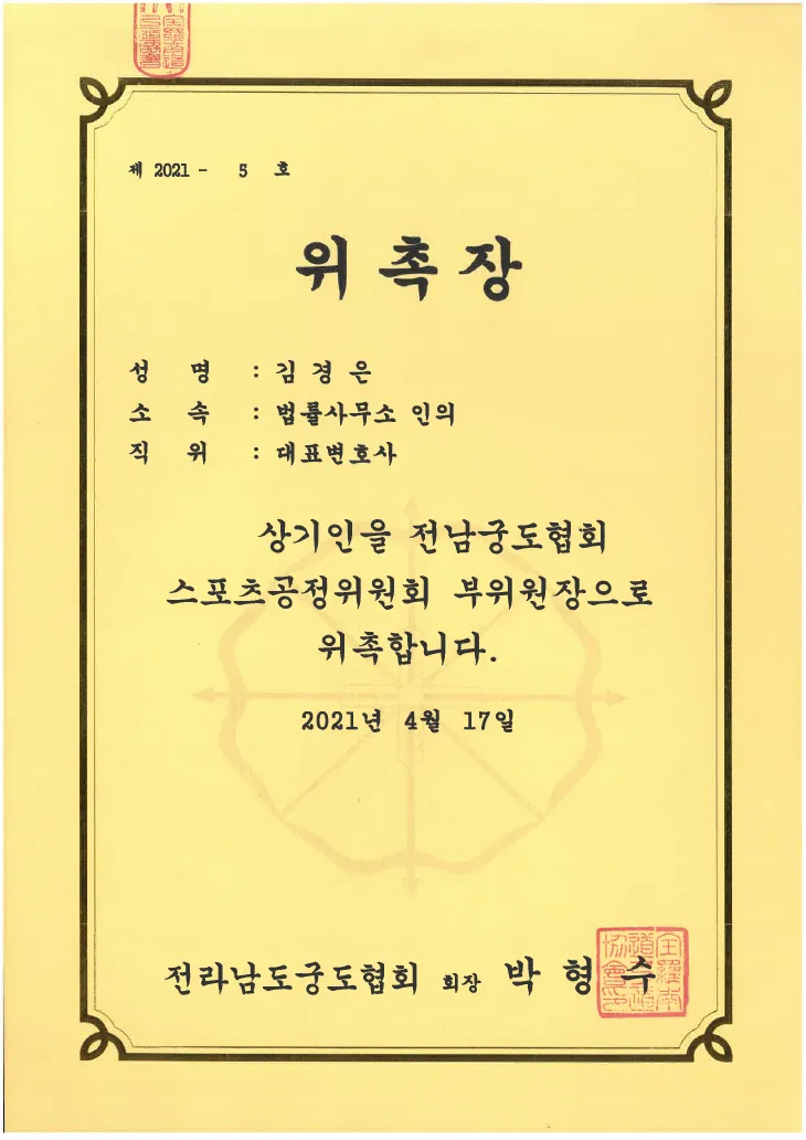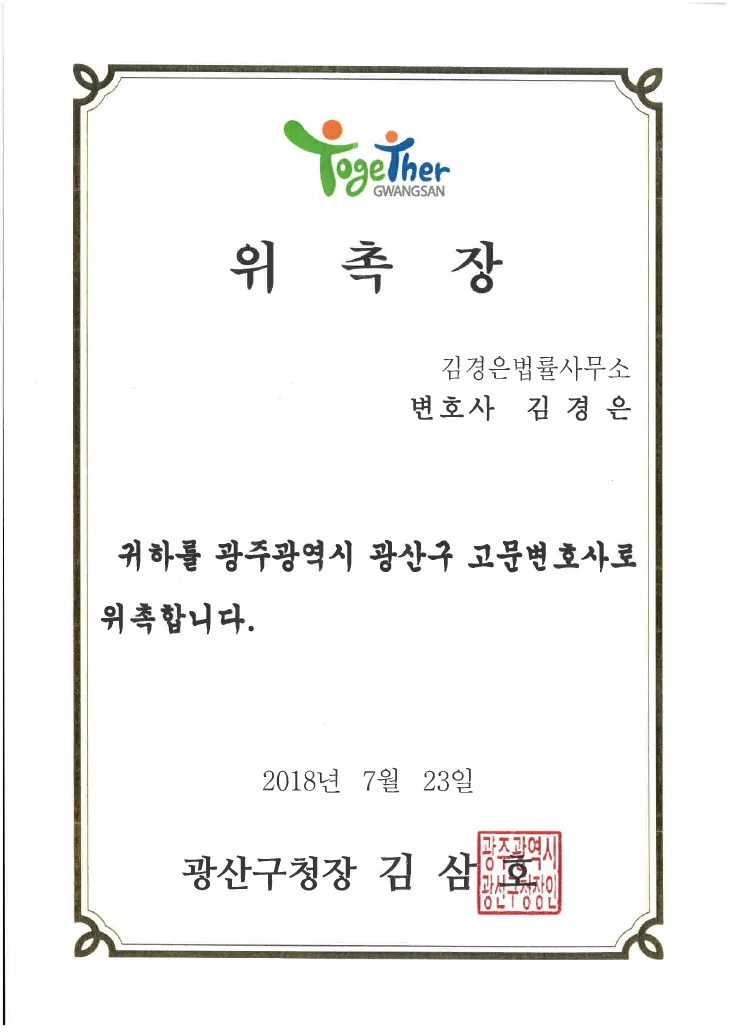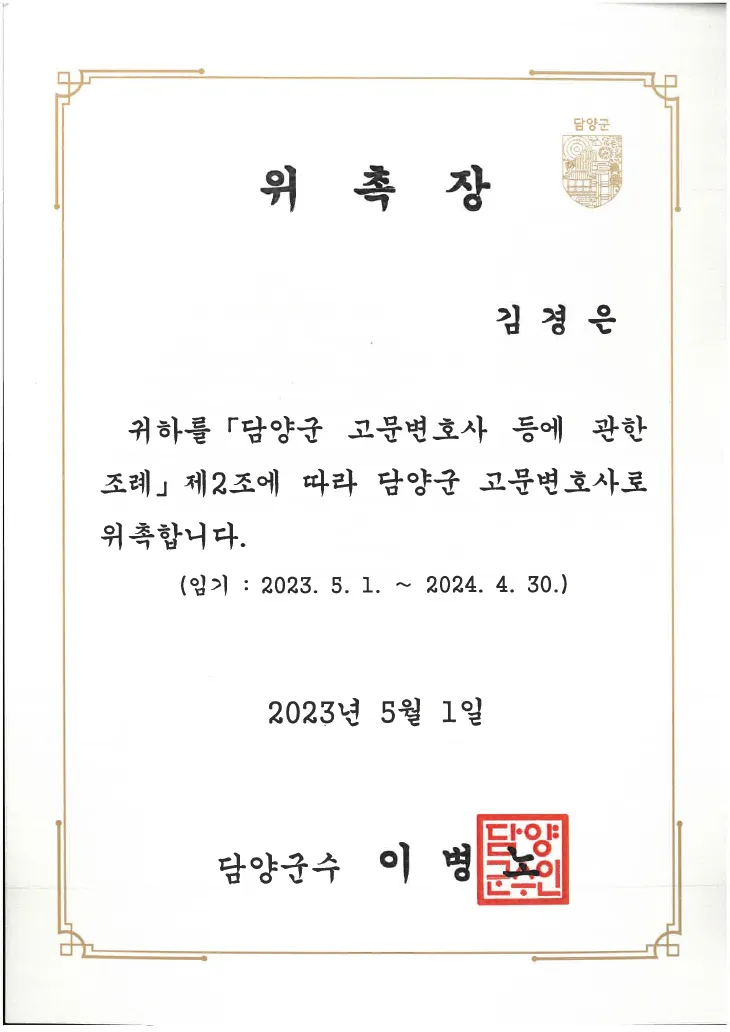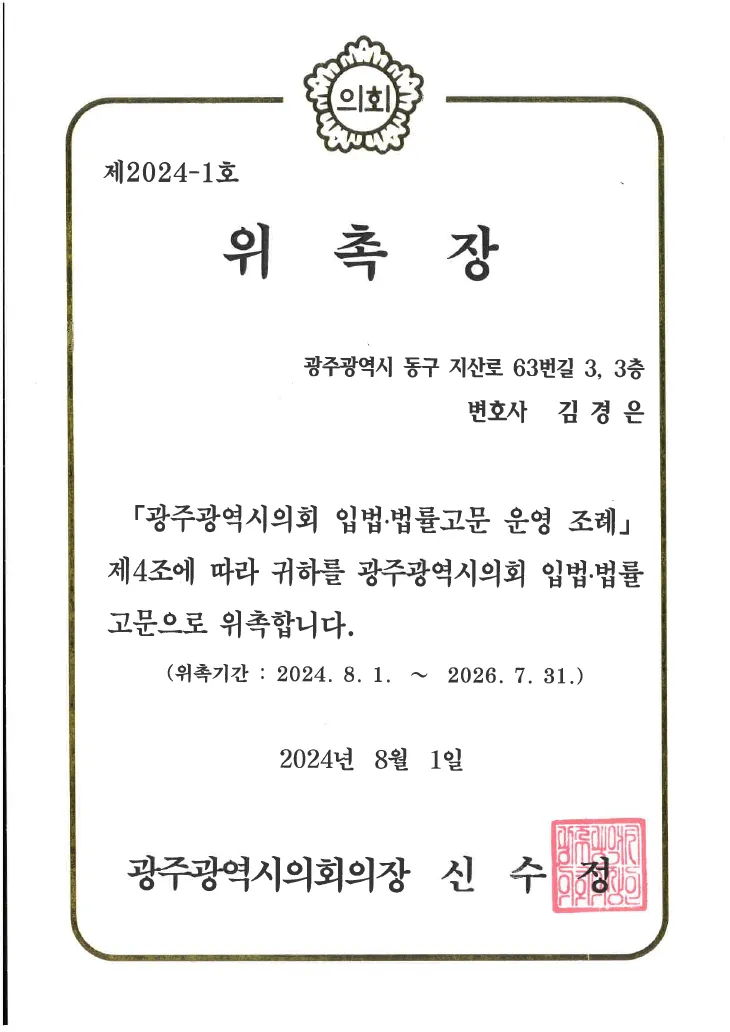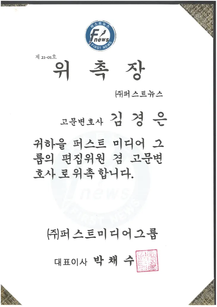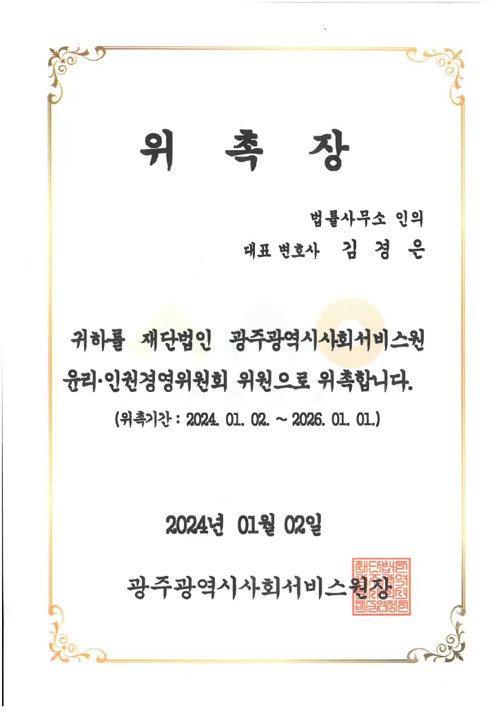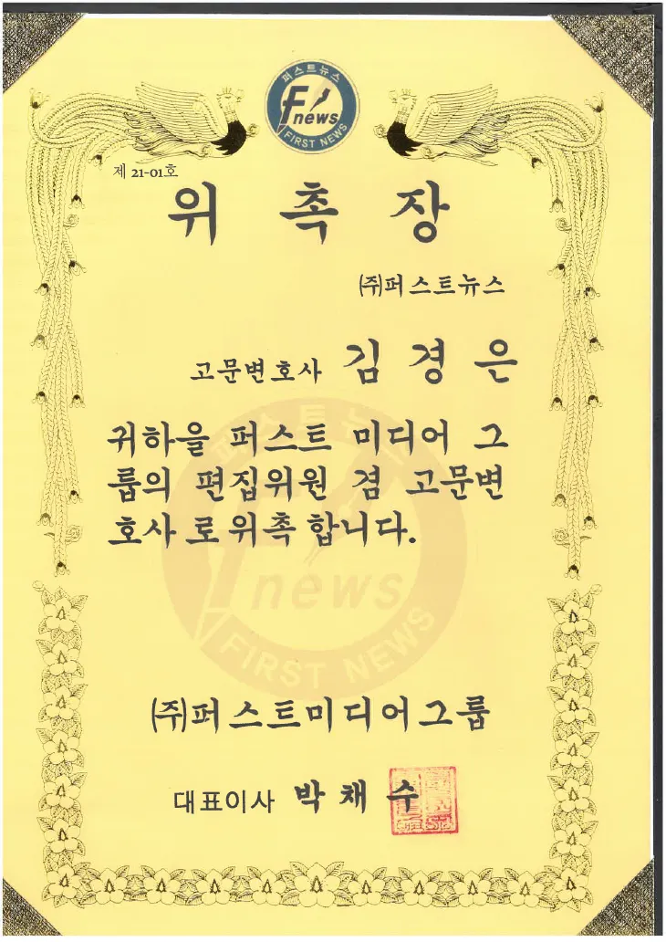 안녕하십니까. 법무법인 인의로 대표변호사 김경은입니다.