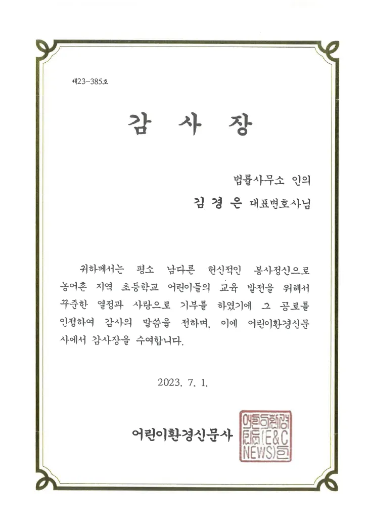 앞으로도 법무법인 인의로는 사람과 정의를 최우선으로 삼아, 지역사회에 힘이 되는 든든한 법률 동반자가 되겠습니다.